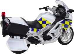 Dieses detailreich gestaltete Polizeimotorradmodell verbindet robuste Materialien mit authentischem Look. Metallteile, hochwertiger Kunststoff und bewegliche Elemente wie Spiegel und Scheinwerfer ergeben eine originalgetreue Replik eines echten Fahrzeugs. Dank integrierter Licht- und Soundeffekte wird das Spiel noch realistischer und unterhaltsamer.