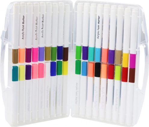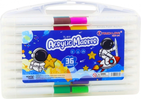 Acrylmarker-Set – das ideale Werkzeug für junge Künstlerinnen und Künstler sowie Kunstliebhaber. Hochwertige Marker in 36 intensiven Farben ermöglichen außergewöhnliche künstlerische und dekorative Projekte. Dank der acrylbasierten Tinte sind die Farben licht- und abriebfest und decken verschiedene Oberflächen wie Papier, Karton, Holz, Kunststoff oder Glas sehr gut ab. Die hohe Pigmentierung sorgt dafür, dass jede Zeichnung ausdrucksstark und farbintensiv wird – ideal für tägliche Skizzen ebenso wie für professionelle Arbeiten.
