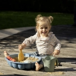 Dieser Mini-Sandkasten enthält alles Notwendige für ein unterhaltsames Spiel – Gießkanne, Harke, Schaufel und zwei Sandförmchen. Dank seiner kompakten Größe ist er nicht nur ideal für Ihren Garten, sondern eignet sich auch hervorragend für den Balkon oder den Strand.