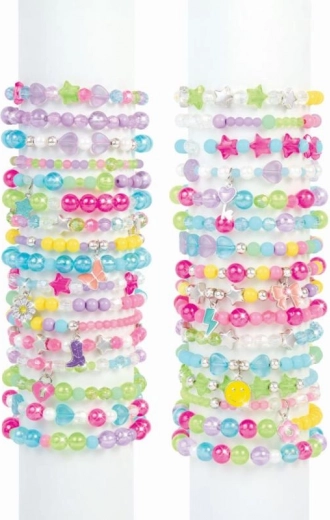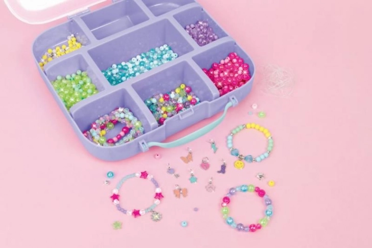 Kreiere deinen eigenen Stil mit diesem kompletten Schmuck-Set: enthält 1.440 Perlen und Anhänger, Material für mehr als 30 Armbänder und ein praktisches tragbares Etui. Ideale kreative Beschäftigung für zu Hause und unterwegs für Kinder ab 8 Jahren.