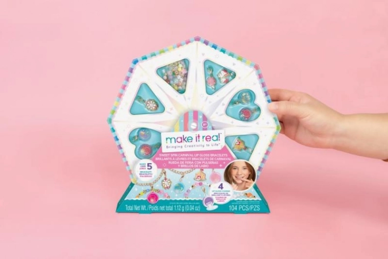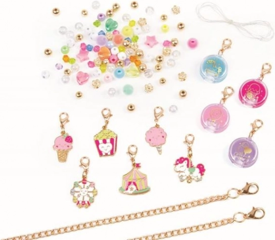 Gestalte bis zu fünf stylische Armbänder mit zauberhaften Anhängern und süß duftenden Lippenbalsamen. Dieses kreative Set bietet spaßiges Basteln, Erdbeer-Lipgloss und ein Karneval-Design mit drehbarer Verpackung in Form eines Riesenrads. Sichere Kosmetik für Kinder ab 8 Jahren – ein tolles Geschenk für kleine Kreative und Modefans.