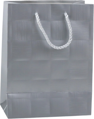 Suchen Sie eine repräsentative Geschenkverpackung? Diese Geschenktasche mit feiner, geometrischer Prägung in regelmäßigen Quadraten wirkt modern und zugleich zeitlos. Die stabile Oberfläche und die gedrehten Kordelgriffe in passender Farbe gewährleisten bequemes und sicheres Tragen auch schwererer Gegenstände.