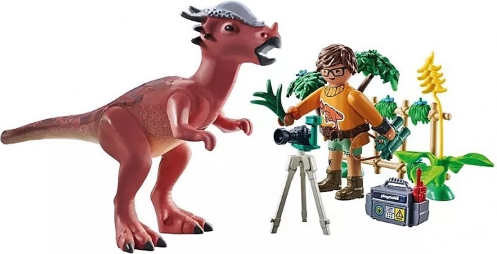 Entdecken Sie die Welt der Urzeittiere mit dem PLAYMOBIL-Set Dinos: Beobachtung des Stygimolochs. Der Forscher ist mit Fernglas, Kamera und Stativ ausgestattet, um die eindrucksvollsten Momente festzuhalten, während der rote Stygimoloch durch die Landschaft streift. Dank durchdachter Details ist das Spiel nicht nur unterhaltsam, sondern auch lehrreich.