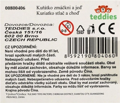 Drücken und los! Das fröhliche Küken im bunten „Eier“-Outfit fährt nach dem Drücken dank des Schwungrad-Mechanismus los. Das Spielzeug fördert die Entwicklung der Feinmotorik, die Hand-Auge-Koordination und die natürliche Neugier der Kinder.
