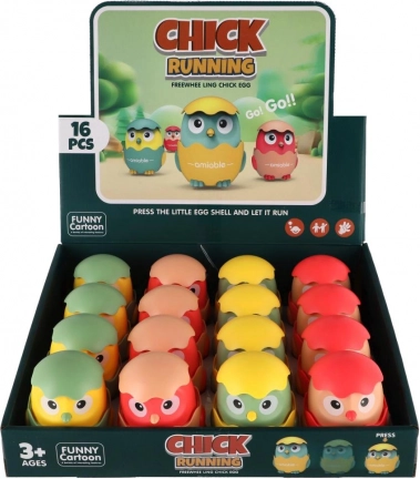 Niedliches Kunststoff-Küken, das sich nach dem Drücken dank des Schwungrad-Mechanismus von selbst nach vorne bewegt. Ideal groß für kleine Kinderhände (7 × 8 cm), sichere abgerundete Formen und jede Menge Spaß beim Beobachten der Bewegung. Perfekt als Frühlings- und Oster-Spielzeug oder als nettes Geschenk für kleine Tierliebhaber. Geeignet ab 3 Jahren.