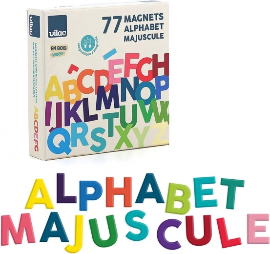 Entdecken Sie die Welt der Buchstaben und Wörter mit dem Vilac Holz-Magnetalphabet. Dieses didaktische Hilfsmittel enthält 77 bunte Holzbuchstaben, die ideal für kleine Kinderhände sind.