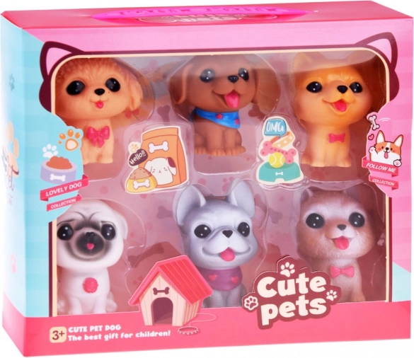 Dieses tolle Set von Gummifiguren ist ideal für Rollenspiele wie Hundesalon, Hundehotel, Welpenkindergarten oder Tierarzt. Wenn Ihr Kind keinen eigenen Hund haben kann, sind diese Figuren eine großartige Alternative.