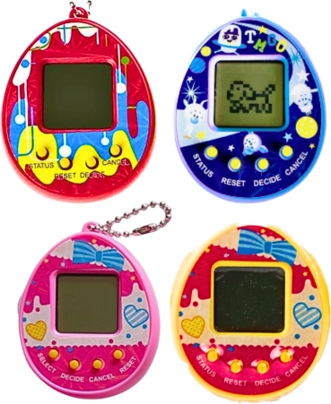 Jedes Tamagotchi ist mit einem praktischen Anhänger ausgestattet, der einfach am Rucksack, Federmäppchen oder an Schlüsseln befestigt werden kann. Die Spielzeuge werden in zufälligen Farben geliefert – Blau, Rot, Gelb oder Rosa.