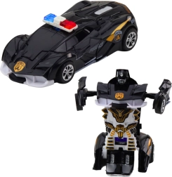 Auf den ersten Blick sieht es aus wie ein klassisches sportliches Polizeiauto, aber nach einer Kollision mit einem Hindernis ändert es seine Form und offenbart eine versteckte Funktion – die Umwandlung in einen Roboter, bereit für die Aktion. Auf diese Weise können Kinder mit dem Spielzeug auf zwei Arten spielen – als Fahrzeug und als humanoide Figur.