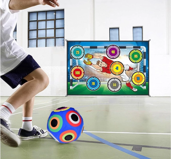 Das Set für Fußball mit Zielscheibe ist so entworfen, dass es sicher und kinderfreundlich ist. Es besteht aus langlebigen, ungiftigen Materialien, die weich und sicher sind. Bunte und attraktive Zielscheibe zieht die Aufmerksamkeit der Kinder auf sich und ermutigt sie zum Üben. Der leuchtende Ball bringt eine weitere Überraschung ins Spiel; er leuchtet beim Wurf, was den Spaß erhöht. Das Spiel ist einfach zu handhaben; Kinder können selbst versuchen, den Ball in die Löcher zu werfen, was Genauigkeit und Konzentration fördert. Außerdem fördert es die motorische Entwicklung; Würfe, Zielen und Fangen helfen dabei, die Feinmotorik und Hand-Auge-Koordination zu üben.