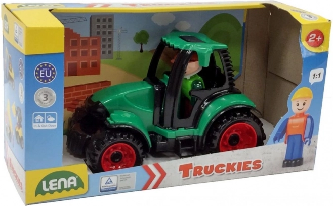 Robuster Kindertraktor LENA Truckies aus hochwertigem Kunststoff für kleine Fahrer ab 2 Jahren. Er ist vollständig mechanisch funktionsfähig, verfügt über eine robuste Konstruktion, eine öffnende Kabine und enthält eine aktive Figur für noch mehr Spaß drinnen und draußen.