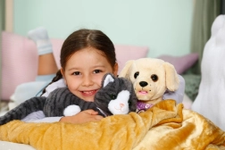 Die Katze Cookie ist so entworfen, dass sie einer echten Katze ähnelt. Kinder können sich auf weiches und angenehmes Fell freuen, ideal zum Kuscheln. Sie ist mit Sensoren ausgestattet, die auf Streicheln reagieren und authentische Geräusche und Vibrationen erzeugen, was dem Spiel eine neue Dimension verleiht.
