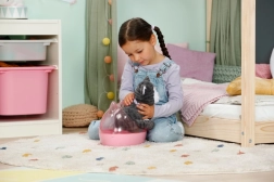 Das Set enthält ein Bettchen, das auch als Transportbox dient. Dadurch können Kinder die Katze überallhin mitnehmen und auch unterwegs Freude an ihr haben. Dieser Aspekt von Spaß und Tragbarkeit macht die Katze Cookie zu einer großartigen Begleiterin.