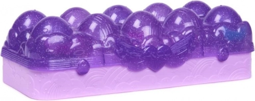 Der robuste lilafarbene Karton mit Glitzer dient zum Schlüpfen, Aufbewahren und Präsentieren der Sammlung. Ideal zum Spielen zu Hause und unterwegs.