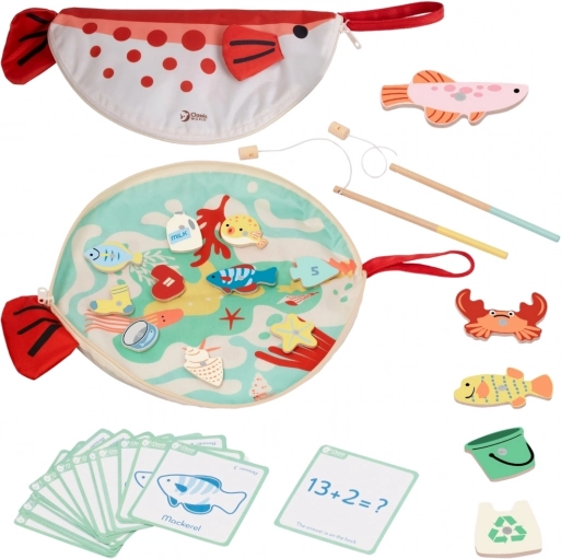 Dieses Holzset bietet 35 farbenfrohe Elemente, die mithilfe der Magnetangeln „gefangen“ werden. Kinder üben Geduld und Genauigkeit und lernen auf spielerische Weise Meerestiere kennen sowie Gegenstände zu sortieren. Bildungskarten bringen einfache Mathematikaufgaben und Wortschatz mit, sodass das Spiel natürlich Spaß und Lernen verbindet.