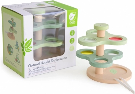 Holzmikroskop und Lupe 2-in-1 „Naturforschung“ von Classic World, welche das Interesse der Kinder an Wissenschaft und Entdeckung weckt. Dieses Spielzeug-Set enthält farbige Linsen, Prismen, eine Lupe und konkave Spiegel, welche die Kreativität fördern und die Motorik verbessern.