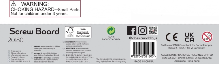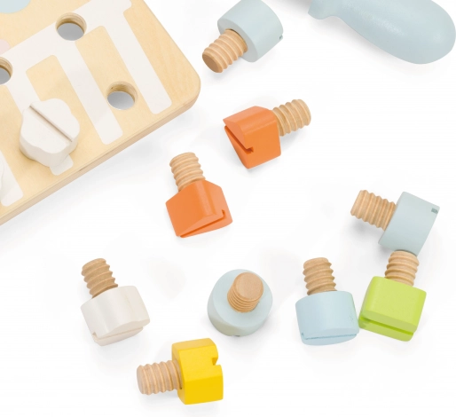 Holzbrett mit bunten Schrauben von Classic World ist ein Spielzeug, das darauf abzielt, Kinder durch Spielspaß zu fördern. Kinder können mit Hilfe der Schrauben verschiedene Formen kreieren, was zur Entwicklung ihrer Koordination und motorischen Fähigkeiten beiträgt.