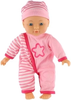 Das weiche Stoffmaterial der Puppe sorgt für Sicherheit und Komfort beim Spielen – ideal für kleine Kinder.