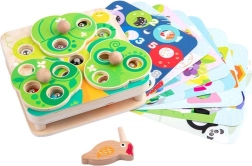 Das hölzerne Vögelchen mit magnetischem Schnabel ermöglicht es, Würmchen leicht zu greifen und zu versetzen. Kinder trainieren bei jedem „Angeln“ Präzision, Griff und Hand-Auge-Koordination.