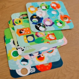 Bunte Tafeln mit Zahlen, Farben, Formen und Tieren erweitern die Spielszenarien. Sie unterstützen frühe mathematische Kompetenzen sowie die Erkennung von Farben und Formen.