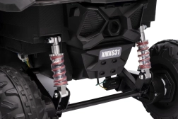 Sicherheit hat oberste Priorität, daher ist das Fahrzeug mit Sicherheitsgurten und einer 2,4-GHz-Fernbedienung ausgestattet, die eine Geschwindigkeitskontrolle und ein schnelles Anhalten bei Gefahr ermöglicht. Für maximalen Komfort ist das Fahrzeug mit EVA-Schaumstoffreifen und einstellbaren Dämpfern vorne und hinten ausgestattet, weshalb die Fahrt auch auf unebenem Gelände sanft ist.