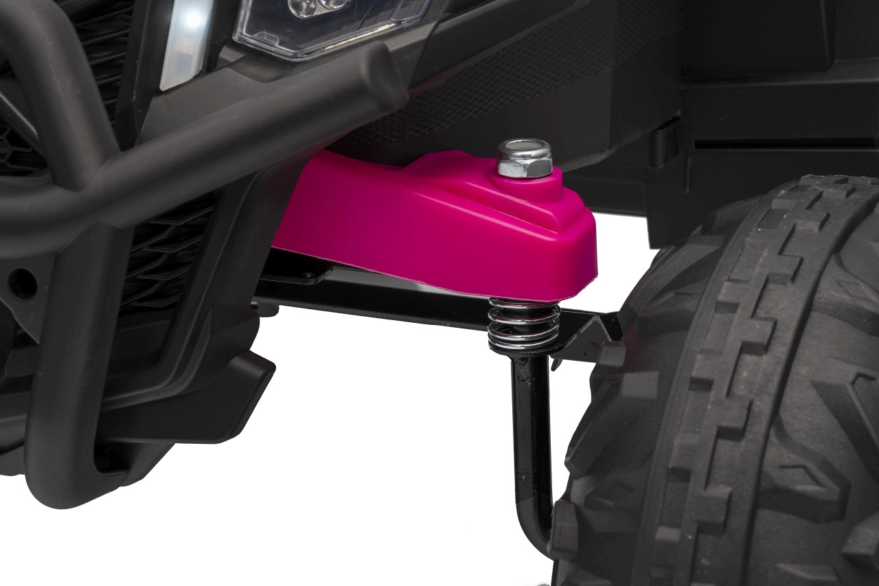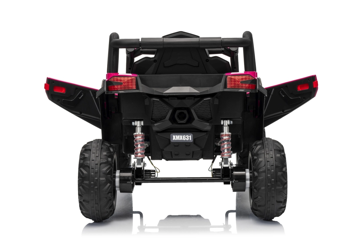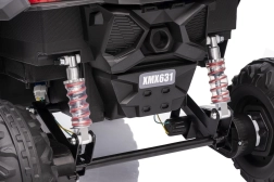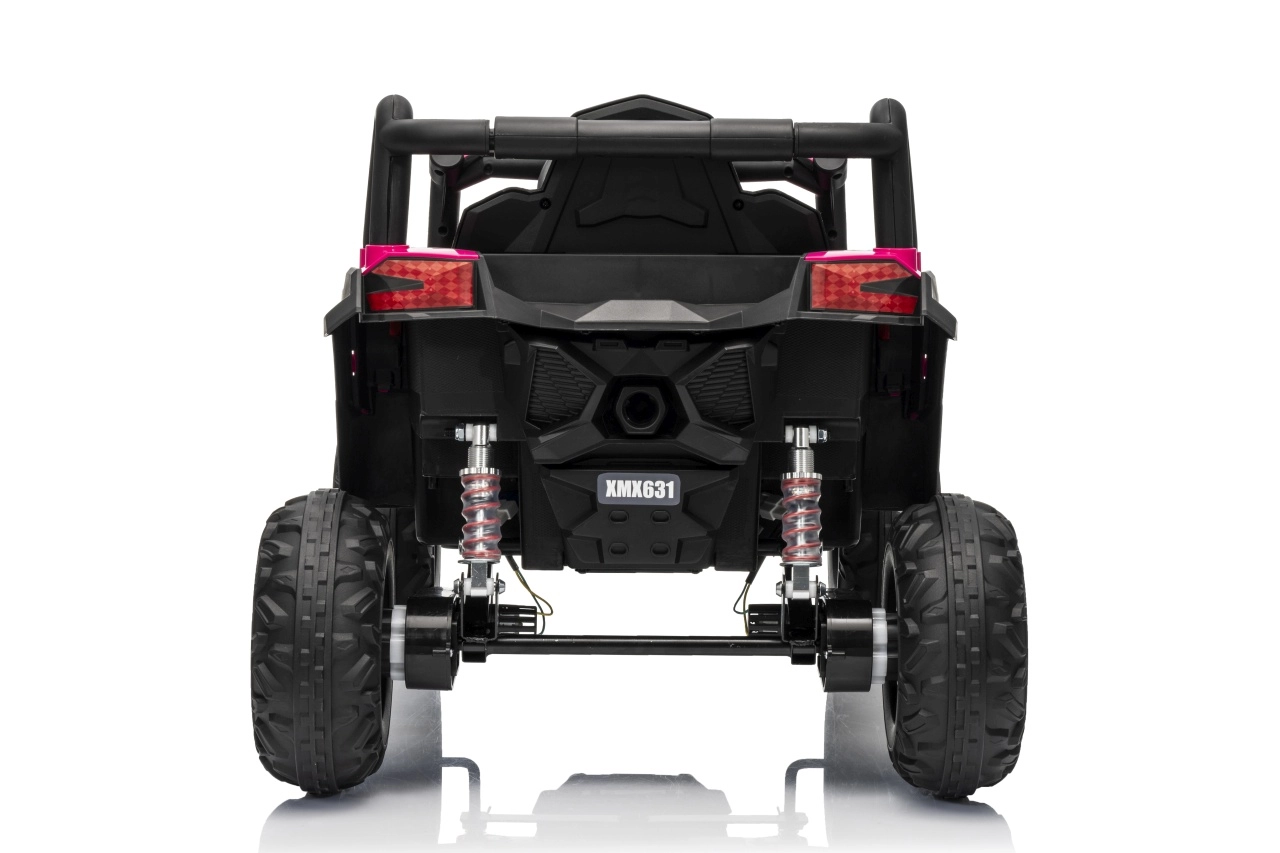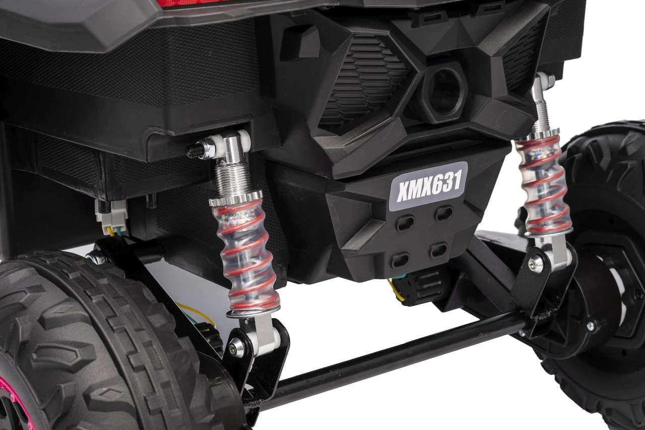 Das Kinder-Elektroauto Buggy Madman UTV-MX ist mit EVA-Schaumrädern mit den Maßen 24x10 cm ausgestattet, was eine komfortable und reibungslose Fahrt gewährleistet. Mit Federung vorne und hinten und zwei Geschwindigkeiten bietet dieses Modell Stabilität auch auf unebenem Gelände.