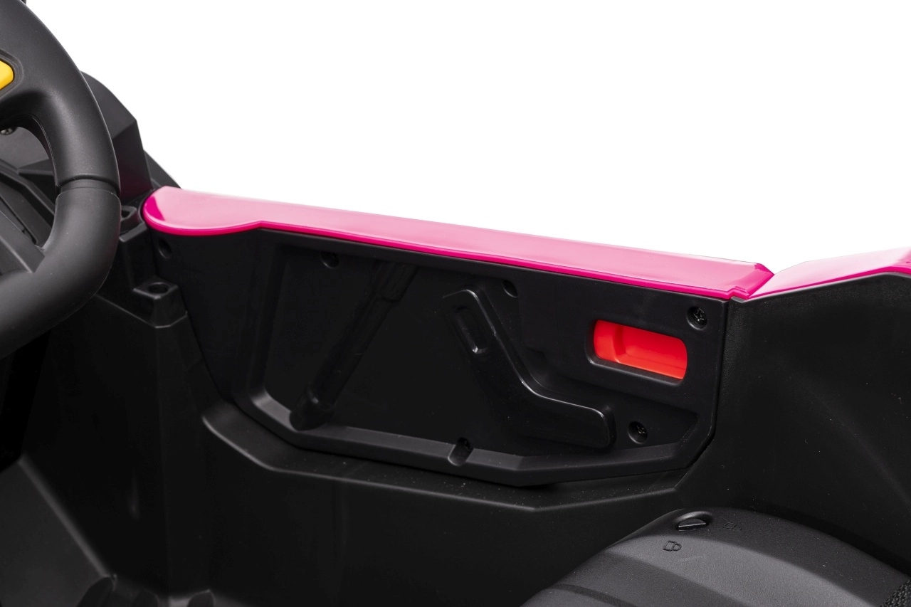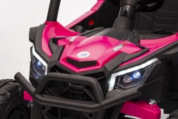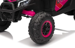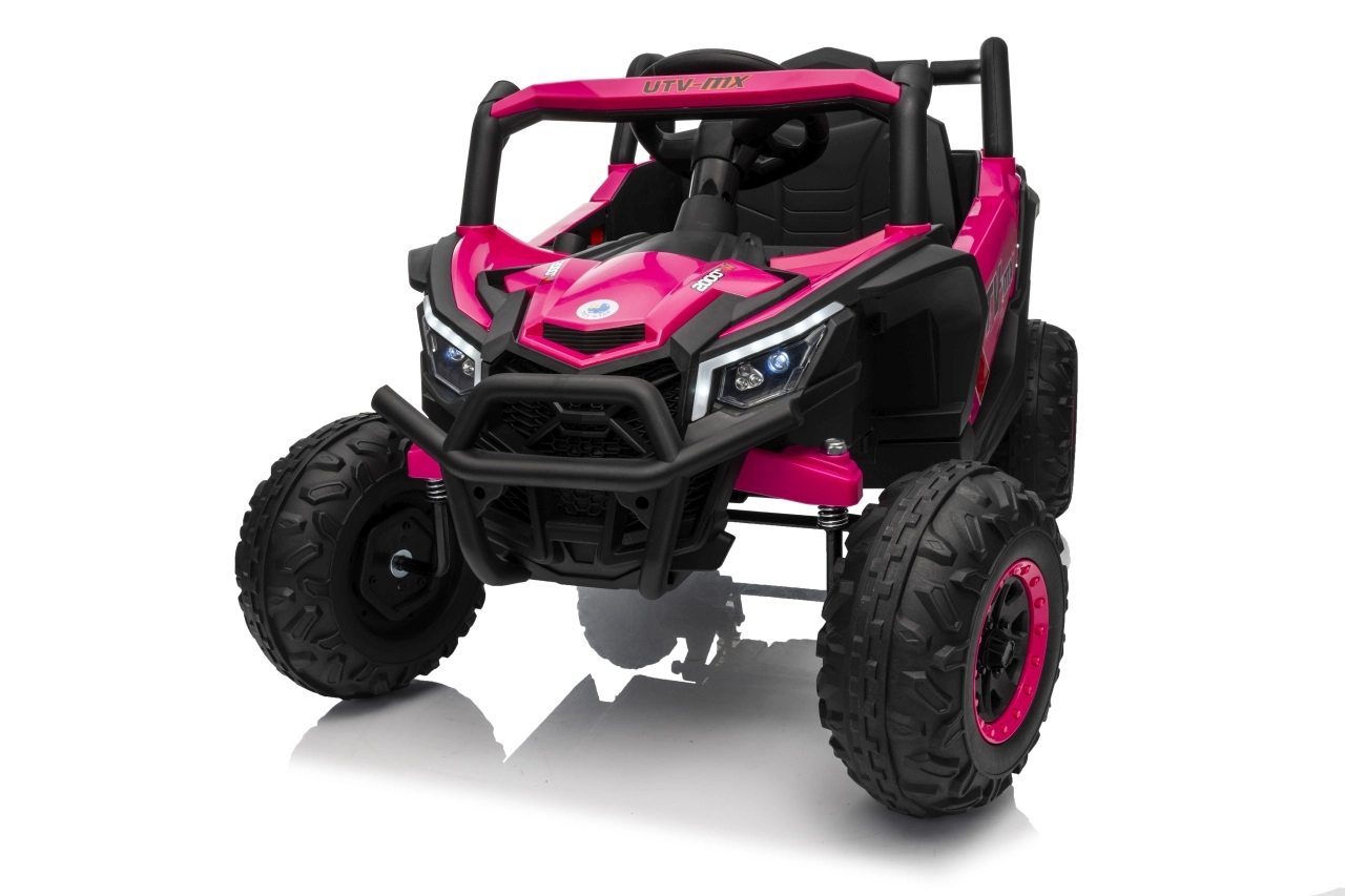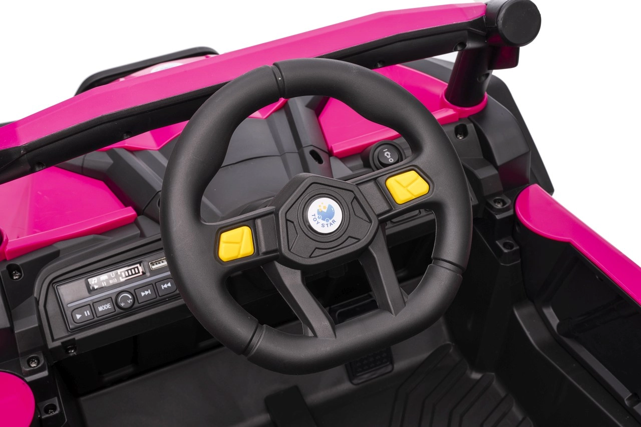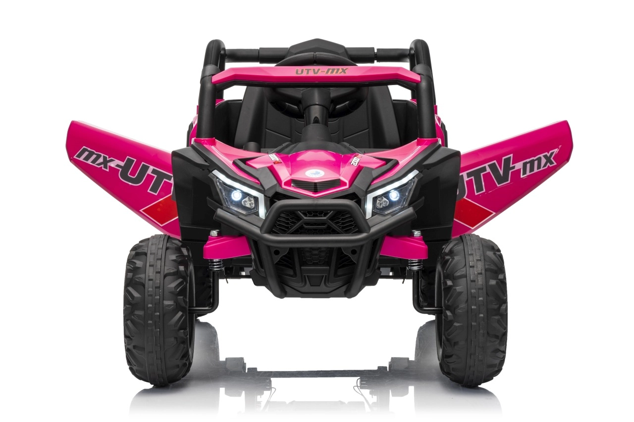 Das Kinder-Elektroauto Buggy Madman UTV-MX ist mit EVA-Schaumrädern mit den Maßen 24x10 cm ausgestattet, was eine komfortable und reibungslose Fahrt gewährleistet. Mit Federung vorne und hinten und zwei Geschwindigkeiten bietet dieses Modell Stabilität auch auf unebenem Gelände.