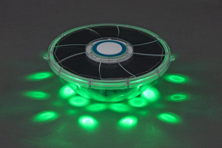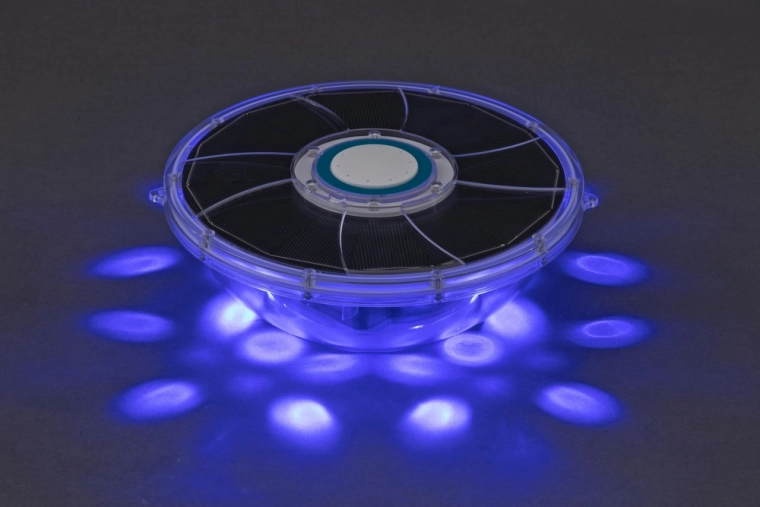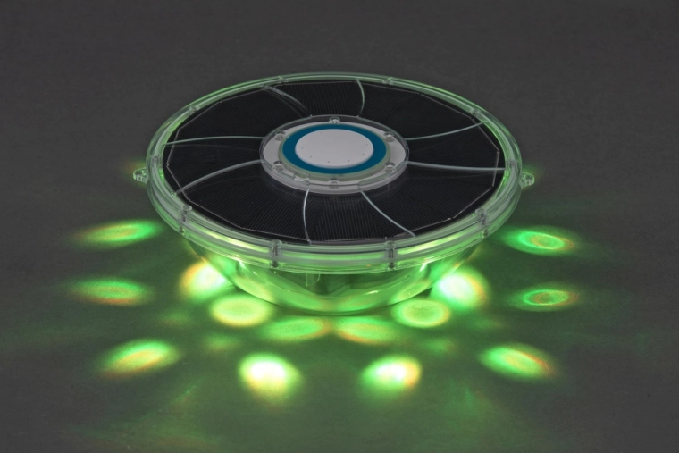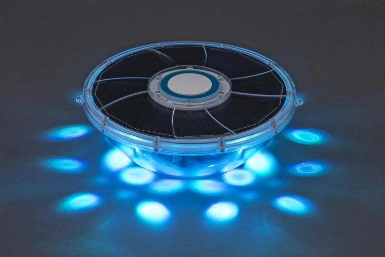Solarer LED-Brunnen Bestway ist ein moderner, schwimmender Poolaufsatz, der Wassereffekt mit farbiger Beleuchtung verbindet. Er schaltet sich bei Einbruch der Dunkelheit automatisch ein und verfügt über eine einfache Ein-Knopf-Bedienung.