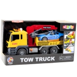 Zusätzlich bietet das Fahrzeug Licht- und Soundeffekte, wie z. B. Sirenenalarm oder Rückfahrgeräusche, die durch Drücken der Tasten auf dem Fahrzeugdach aktiviert werden. Der Abschleppwagen verfügt über gummierte, rutschfeste Räder, die den Boden nicht zerkratzen und ein sicheres Fahren im Haus ermöglichen. Außerdem ist ein blauer Sportwagen enthalten, der separat bespielt oder bewegt werden kann.