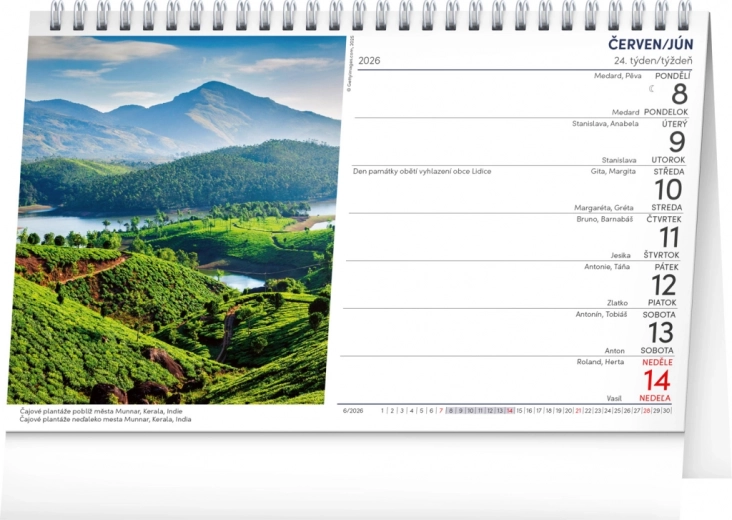 Der Kalender Landschaft 2026 bietet 53 Aufnahmen von Landschaften, ein tschechisch-slowakisches Kalendarium, Feiertage, Mondphasen und Namen.