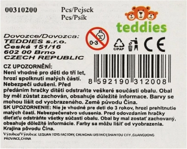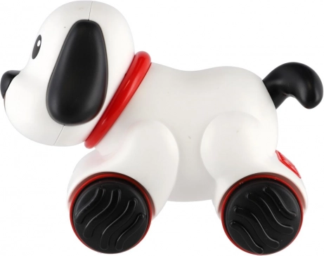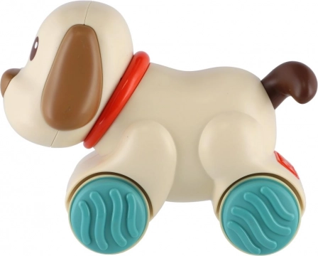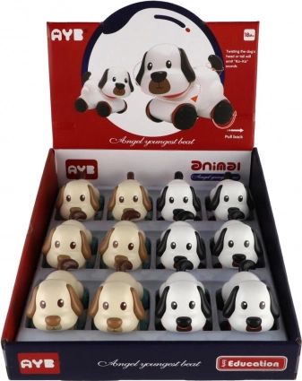 Niedlicher Plastik-Hund mit Rückziehmechanismus. Einfaches und unterhaltsames Spielzeug für Kinder ab 3 Jahren.