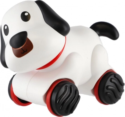 Niedlicher Plastik-Hund, der nach dem Aufziehen von selbst losfährt. Dank des Rückziehmechanismus ist das Spielzeug einfach und unterhaltsam für Kinder aller Altersgruppen.
