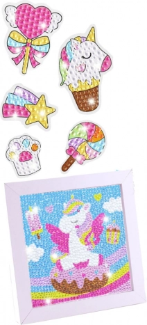 Das Set enthält alles, was zur Fertigstellung des gesamten Projekts benötigt wird, einschließlich eines dekorativen Rahmens mit einem bezaubernden Einhornbild. Das Spielzeug ist ideal als Geschenk für kleine Künstler.