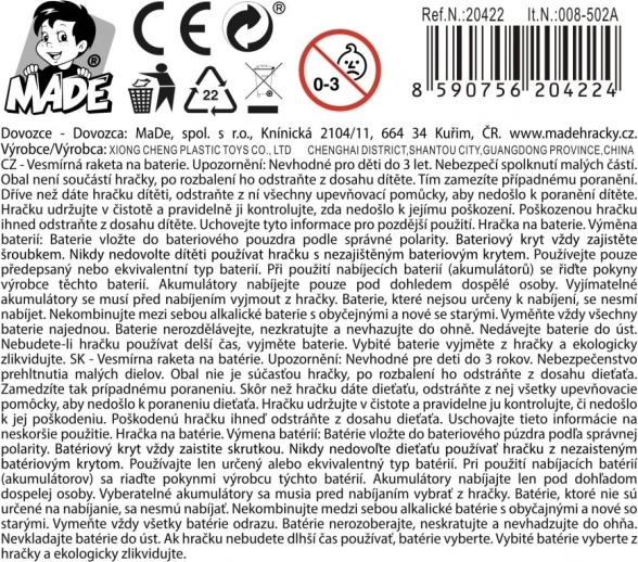 Für die volle Funktionalität werden zwei AA-Batterien benötigt (nicht im Lieferumfang enthalten), die interaktives Spielen ermöglichen. Die Weltraumrakete ist in einer kompakten Box verpackt und ist vor allem für Jungen eine hervorragende Wahl.