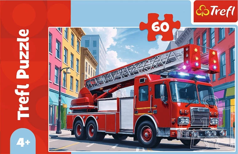 Puzzle, das Spaß und Entwicklung für Kinder mit dem Motiv des Feuerwehrautos und 60 Teilen für ein perfektes Erlebnis bietet.