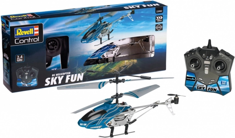 Der unterhaltsame Hubschrauber Sky Fun ist dank seiner kompakten Abmessungen (185 mm lang, 40 mm breit, 100 mm hoch und Rotor-Durchmesser 195 mm) unglaublich wendig und perfekt für den Innenflug geeignet. Das Design ist freundlich und attraktiv, sodass es sowohl Kindern als auch Erwachsenen Freude bereitet.