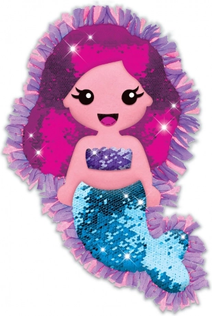 Entdecke den spielerischen Weg zu deinem eigenen kuscheligen Spielzeug – das Meerjungfrauen-Kissen wird ganz einfach mit Knoten zusammengesetzt. Kein Nähen, keine Nadeln, nur Freude am Gestalten. Die vorgeschnittenen Teile aus weichem Fleece, Pailletten und Filz sind selbstklebend vorbereitet und lassen sich schnell zusammenfügen.