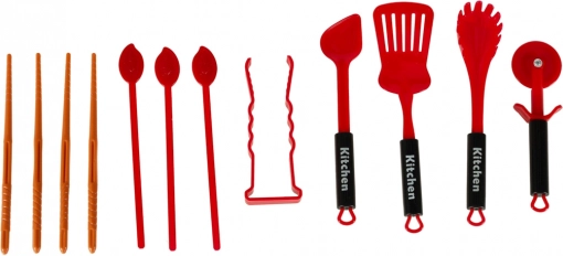 Enthält Spielzeug wie Grill, Pfanne, Kessel und weitere nützliche Utensilien, die Kinder zum Spielen als Koch benötigen.