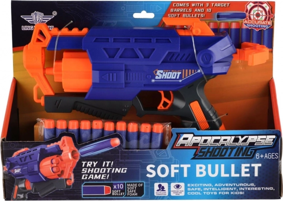 Das Set enthält 10 Schaumstoffkugeln und eine 28 cm lange Pistole, die auch in kleinen Händen leicht zu halten ist.