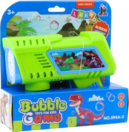 Grüne Seifenblasenpistole Dinosaurier mit LED, großartiges Spielzeug für Kinder für Gartenspiele und Feiern.