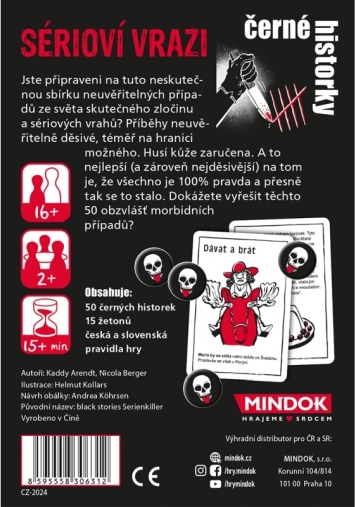 Tauche ein in die Welt des True Crime mit der Edition Black Stories: Serienmörder – einem Set aus 50 eiskalten Fällen, inspiriert von der Realität. Die Spielenden enthüllen gemeinsam schaurige Rätsel, indem sie gezielt kluge Fragen stellen und Schritt für Schritt rekonstruieren, was wirklich passiert ist. Ideal für Partys, lange Abende und Fans von Detektivgeschichten und True Crime.