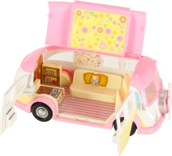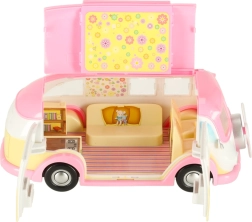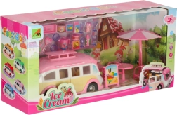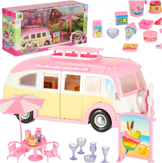 Dieser niedliche Eiscreme-Camper in Rosa-Creme-Farben verwandelt jedes Zimmer in ein kleines Bistro auf Rädern. Kinder können das Dach und die Türen öffnen, die Markise ausziehen und Gäste am Tisch mit Sonnenschirm bedienen. Realistische Interieur-Details fördern kreative Geschichten und stundenlangen Spielspaß.