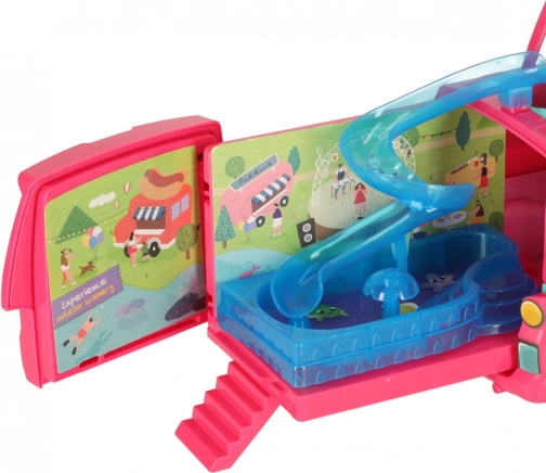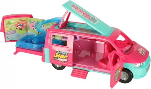 - Aufklappbarer Wohnwagen mit Funktionen wie Türöffnen und ausziehbaren Stufen.