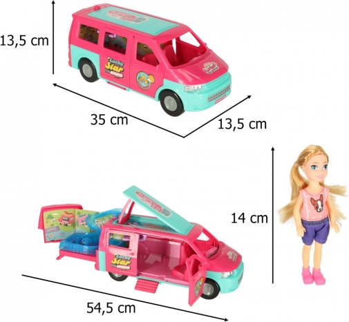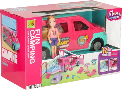 Camping-Wohnwagen für Puppen ist das ideale Zubehör für Sommerabenteuer. Er bietet eine breite Palette von Zubehör für Spaß im Freien mit Ihren Lieblingspuppen.