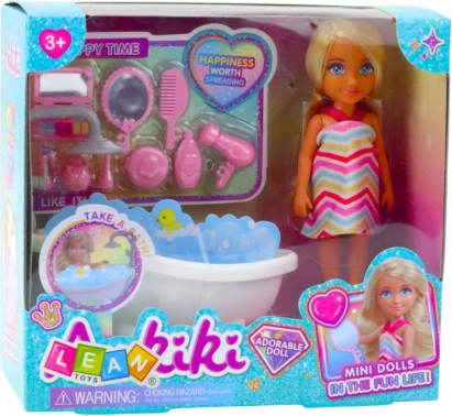 Der Satz Mini Puppe Ankiki mit Wanne und Pflege von Zubehör bietet Kindern Spaß und lehrt hygienische Gewohnheiten.