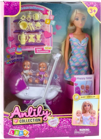 Puppe Anlily mit Kinderwagen und zwei Kindern