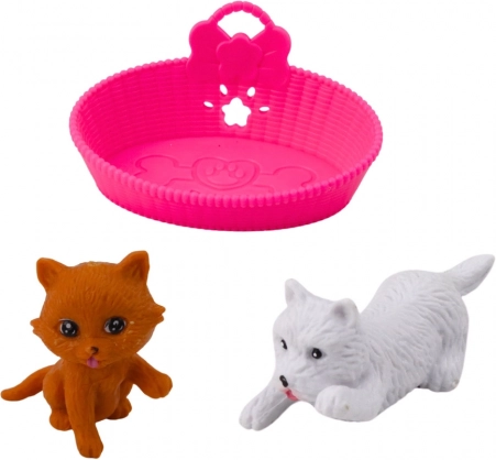 Mini-Puppe mit Hund und Katze mit Zubehör