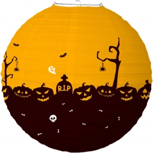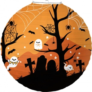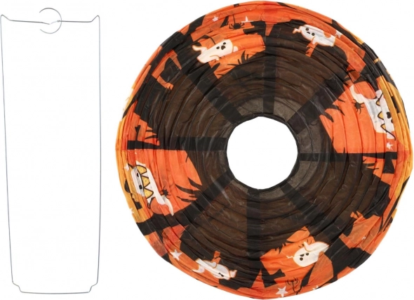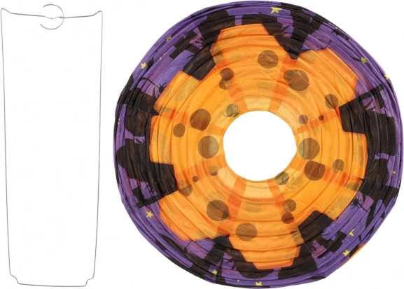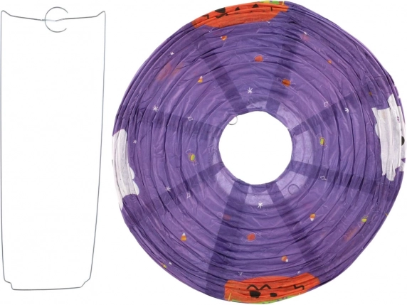 Dieser dekorative Lampion ist ideal für Halloween-Partys, die Dekoration von Kinderzimmern, Gärten und Schaufenstern. Die runde Form, markanten orange- und violettfarbenen Töne sowie die typischen Halloween-Motive sorgen für einen sofortigen Effekt. Dank Metallhaken und Innenrahmen lässt er sich leicht zusammensetzen und aufhängen.
