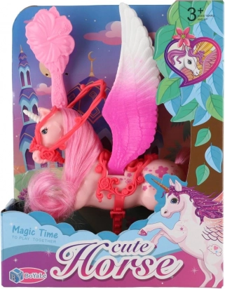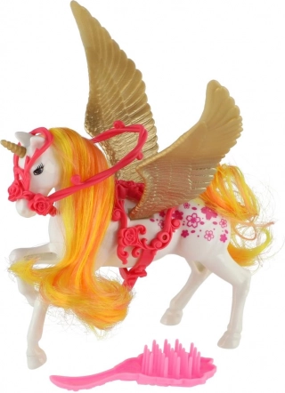 Dieses niedliche Einhorn mit Flügeln hat eine lange Mähne und einen Schweif, die Kinder nach ihrer Fantasie kämmen und stylen können. Dank des beiliegenden Kamms ist die Pflege der Mähne einfach und macht Spaß. Das Spielzeug fördert die Feinmotorik, die Kreativität und regt zur Rollenspiel an.