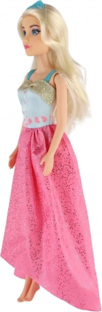 Der lange rosa Rock mit Glanz und das kontrastierende blaue Oberteil verleihen der Puppe einen außergewöhnlichen Look – ideal für Ball und Modenschau.
